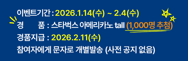 - 경 품 :스타벅스 아메리카노 tall (1,000명 추첨)