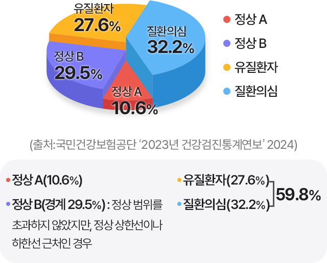 건강검진을 받은 2명 중 1명 '질환이 있거나 질환 의심자'